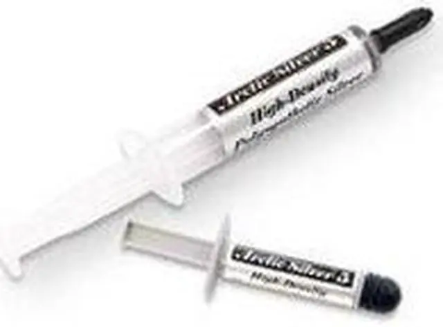 "Arctic Silver 5 High-Density Polysynthetic Silver Thermal Compound 12g AS5-12G. Arctic Silver 5 premium thermal compound, with 99.9 % pure micronized silver, is specifically designed to maximize the thermal conductivity between today's high-powered processors and high-performance cooling assemblies. Arctic Silver 5 uses three unique shapes and sizes of near-pure silver particles to maximize particle-to-particle contact area and thermal transfer. It can reduce CPU core temperatures by up to 50°F over standard silicone thermal pastes. Controlled triple phase viscosity allows Arctic Silver 5 to fill, over time, microscopic valleys and gaps in CPU and heatsink surfaces.