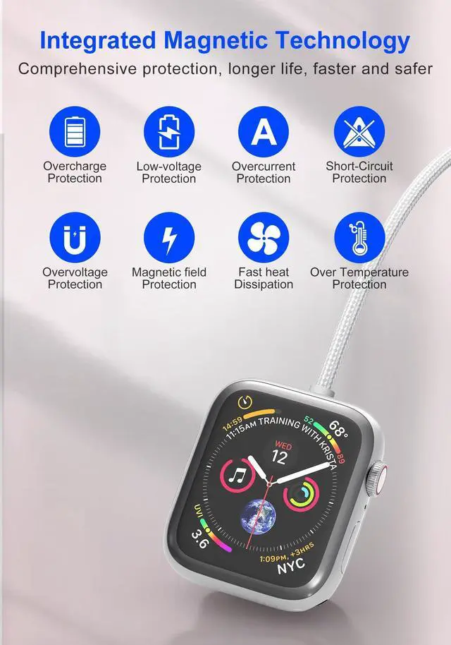 Magnetic Apple Watch Charger with Secure FitThe built-in magnetic apple watch charger offers strong adsorption, snapping perfectly into place on any Apple Watch series (Ultra/8/SE2/7/6/SE/5/4/3/2/1) for stable, efficient charging. Designed for iwatch charger fast charging, it provides a reliable experience without slipping. (Note: no iwatch case for better charging speed).