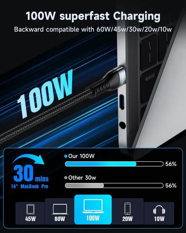 True 100W PD Charging Built for Laptops and BeyondDesigned for performance, the multi charging cable 100w supports Power Delivery for highpower devices like MacBook Pro, Dell XPS, and iPad Pro. It also provides quick, stable charging for iPhone and Galaxy phones. With smart current distribution and upgraded copper wiring, every watt is delivered efficiently and safely. (PD wall charger not included.)