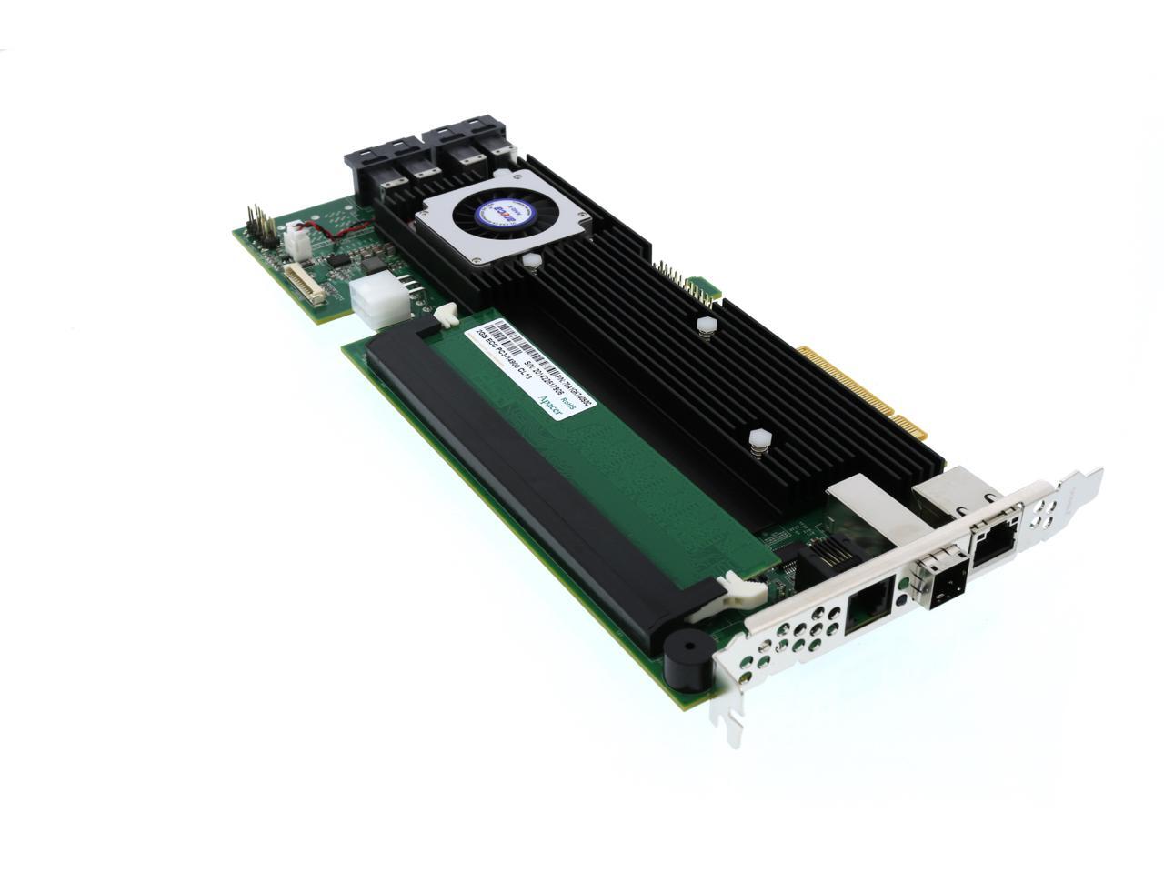 | Features | 16 Port internal + 4port external PCIe3.0 x8 Lanes, Dual Core RAID-on-Chip 1.2 GHz; 12G SAS2 Raid Adapter, 2GB on-board DDR3-1866 Cache, max. 8GB. Up to 256 12Gb/s SAS or 5Gb/s and 3Gb/s SAS/SATA HDDs/SSD, using 12Gb/s SAS expander, 3x - Internal HD MiniSAS (SFF-8643 Port), 1x External HD MiniSAS (SFF-8644); No Cable |