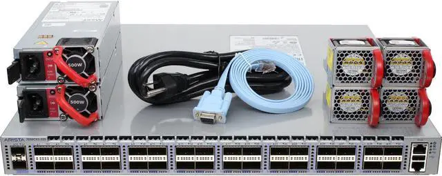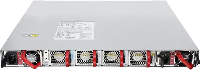 Switch Includes: 2 x 500W hot-swappable AC Power Supplies (Front-to-rear airflow). 4 x hot-swappable fans (Front-to-rear airflow).