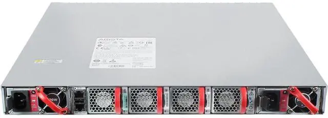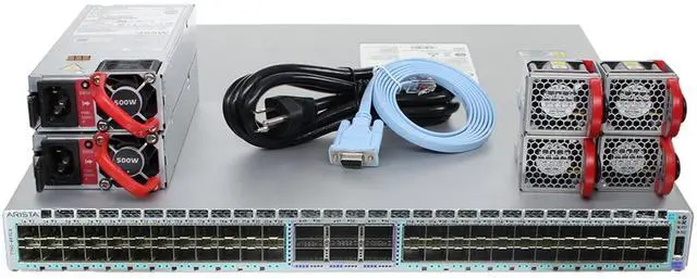 Switch includes: 2 x 500W hot-swappable AC Power Supplies (Front-to-rear airflow). 4 x hot-swappable fans (Front-to-rear airflow).