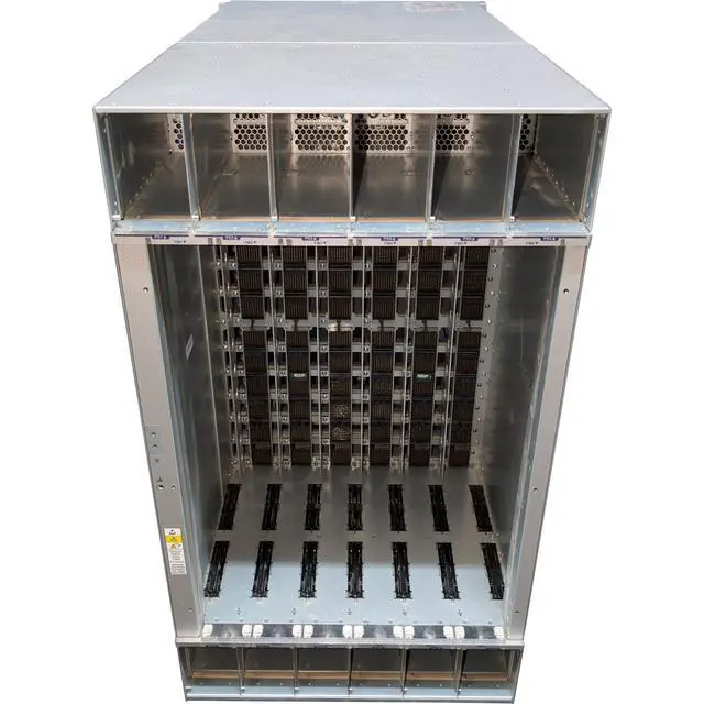 Switch includes: 2 x Supervisor slots (Modules not included), 12 x Linecard slots (Modules not included), 6 x Fabric module slots (Modules not included), 12 x Power supply slots (PSUs not included).