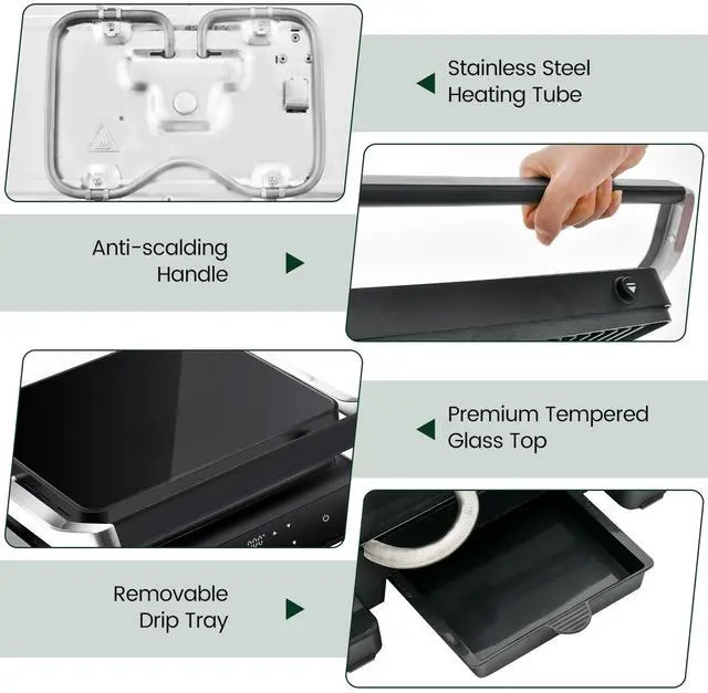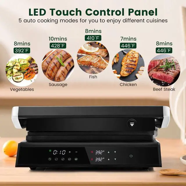 • [Easy LED Touch Control]: Designed with easy-to-operate LED touch control panel, you can easily set your desired heating temperature and 0-4h timer. And there are 5 auto cooking modes for you to enjoy different cuisines. Plus, double cooking plates with individual temperature control (adjustable temperature range: 194-446) provide added convenience.