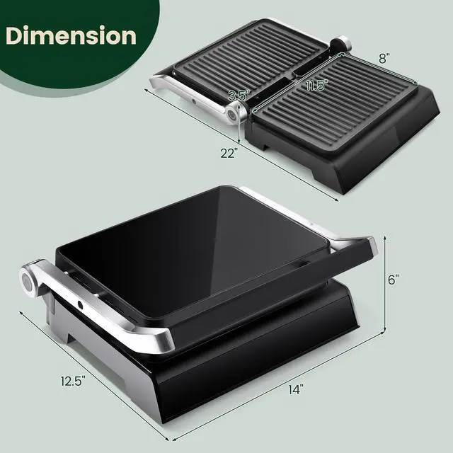 • [3 In 1 Panini Maker]: With its versatile 3-in-1 design, this electric panini press grill isn't limited to just making hot sandwiches. You can also use it as a contact grill for grilling steaks, veggies, or chicken breast. The double side cooking plates open 180° flats for grilling a variety of foods! You can DIY the different sandwiches and barbecues for your family.