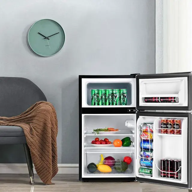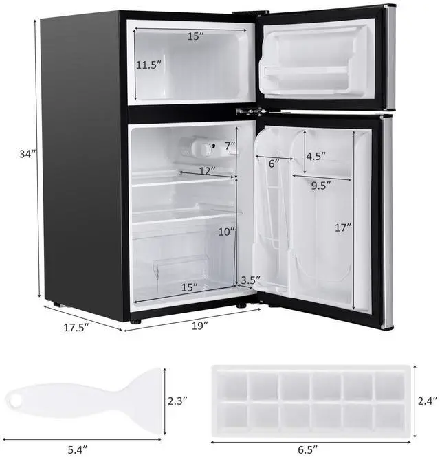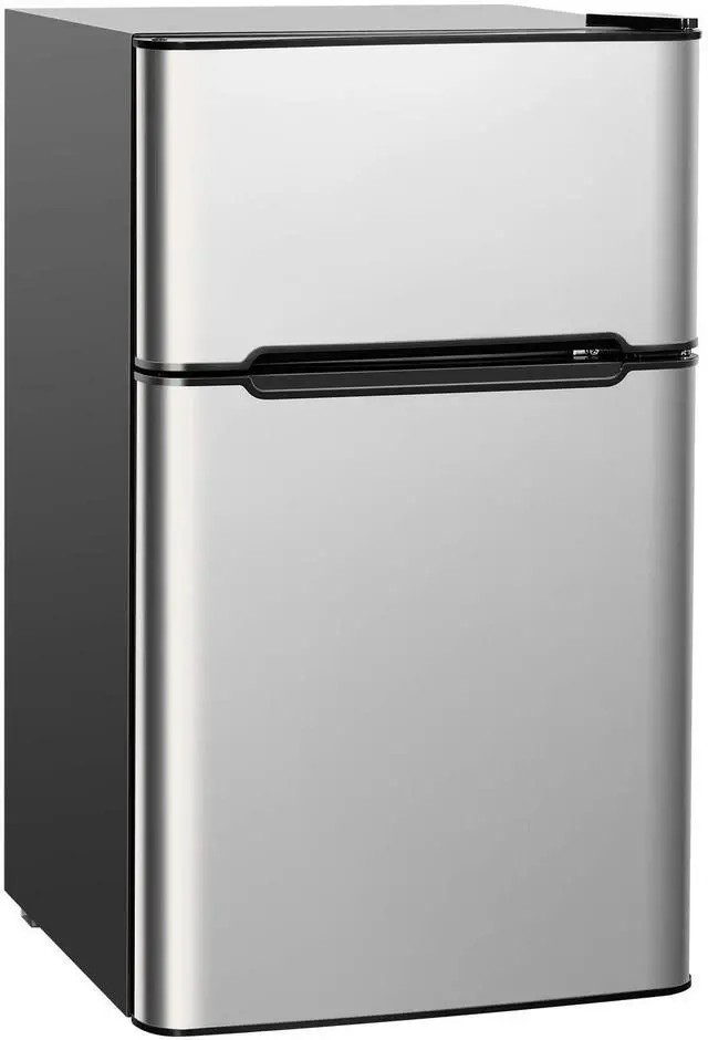 Sturdy and durable steel construction ensures long-lasting use Compressor cooled for ultimate cooling performance in short time LED interior light illuminates for clearly viewing and finding your food Separate top freezer compartment provides storage for frozen foods 2-door shelves conveniently keep beverage cans in the door Pullout crisper drawer keeps foods well organized Removable glass shelves are easy to clean with water or damp cloth With built-in handles between the doors for easy opening Large capacity provides enough space for your drinks and foods Perfectly sized for kitchens, small apartments, tiny homes