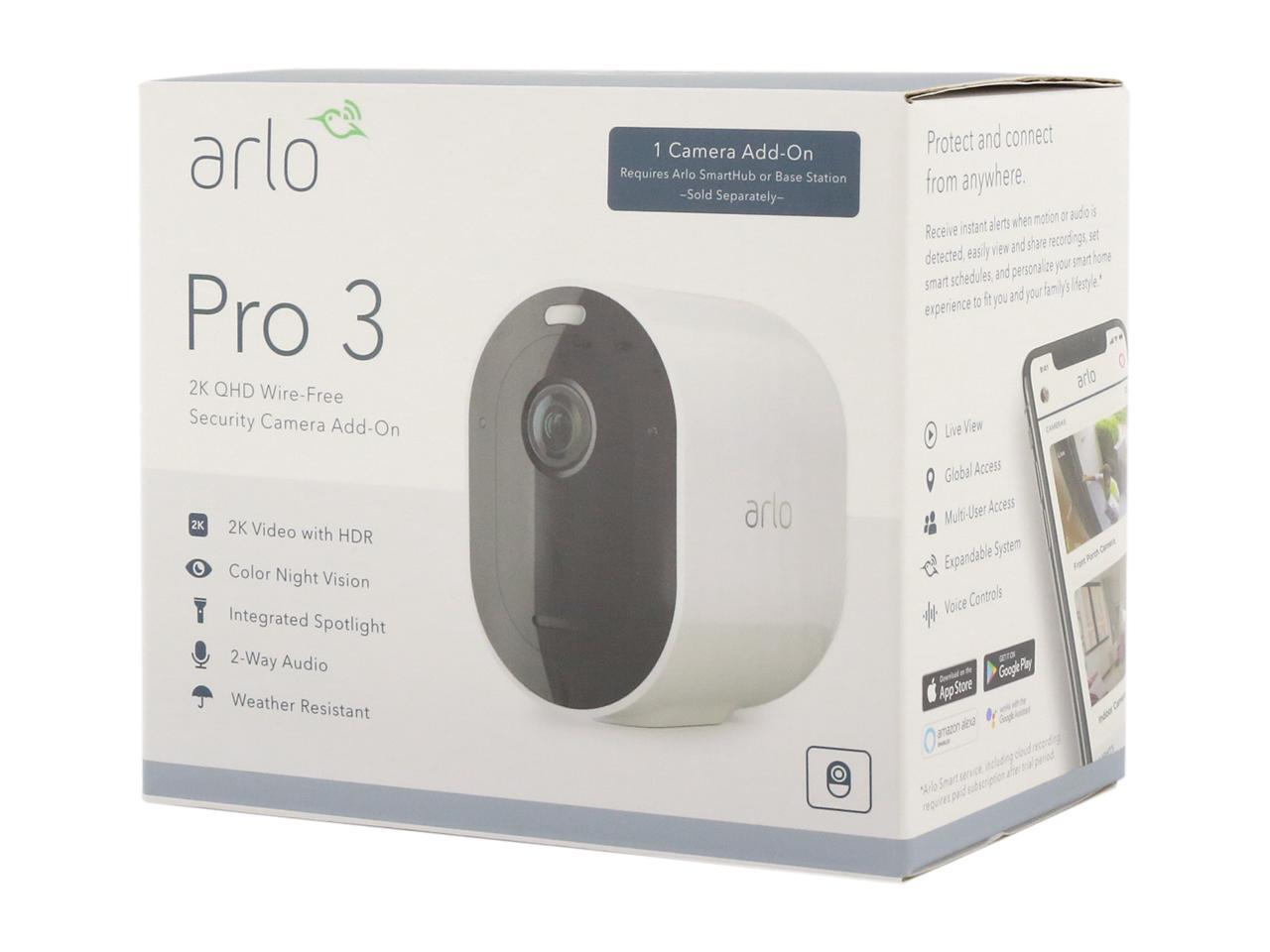 Arlo Pro 3 - Wire-Free Security Add-On Camera, 2K Resolution with HDR, 160° View, Indoor/Outdoor, Color Night Vision, Spotlight, 2-Way Audio, Rechargeable Battery, Requires an Arlo Smart hub or Base Station, Sold Separately (VMC4040P)