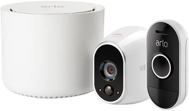 | Package Contents | 1 x Wire-Free HD Camera 1 x Wire-Free Audio Doorbell 1 x Base station with power adapter 1 x Ethernet cable 1 x Wall mount 1 x Camera mounting screw kit 1 x Doorbell mounting screw kit 4 x CR123 batteries 2 x AA batteries 1 x Quick start guide 1 x Window Decal |
