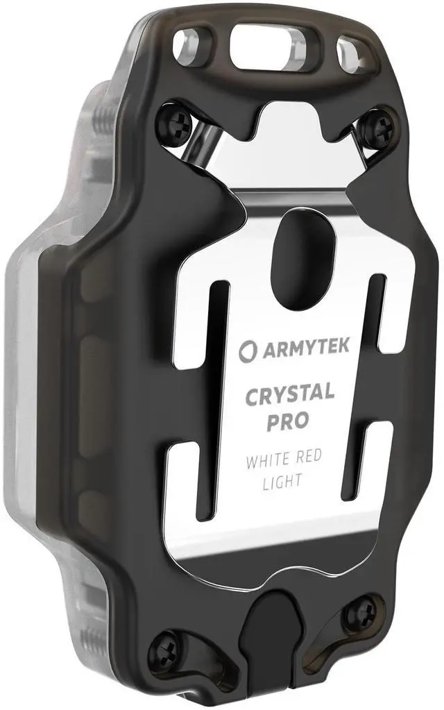 Bicycle brake light is a new feature of the Armytek compact multi flashlight, which significantly expands the areas of application. Specially for use as a brake light, Crystal Pro is equipped with a built-in 3D accelerometer. Highly sensitive sensors detect bicycle deceleration, after which additional red LEDs turn on and the brightness of the flashlight increases to 43 lumens. An included bicycle mount securely fixes the flashlight on a bike.