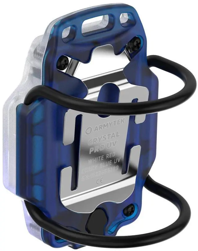 Crystal Pro UV can be used as a headlamp, attached to a belt or clothes, including specialized uniforms, carried on a strap or with keys. The model is also mounted on sporting gear using silicone rings. Body material and special arrangement of LEDs provide wide beam angle of 180°, optimal for close-range application.