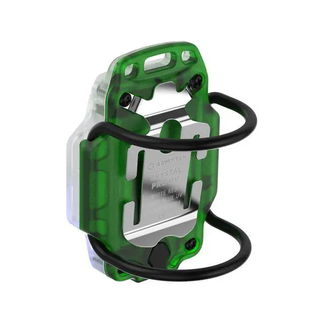 Crystal Pro UV can be used as a headlamp, attached to a belt or clothes, including specialized uniforms, carried on a strap or with keys. The model is also mounted on sporting gear using silicone rings. Body material and special arrangement of LEDs provide wide beam angle of 180°, optimal for close-range application.
