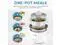 Steam seafood and vegetables with the steam tray while rice cooks below