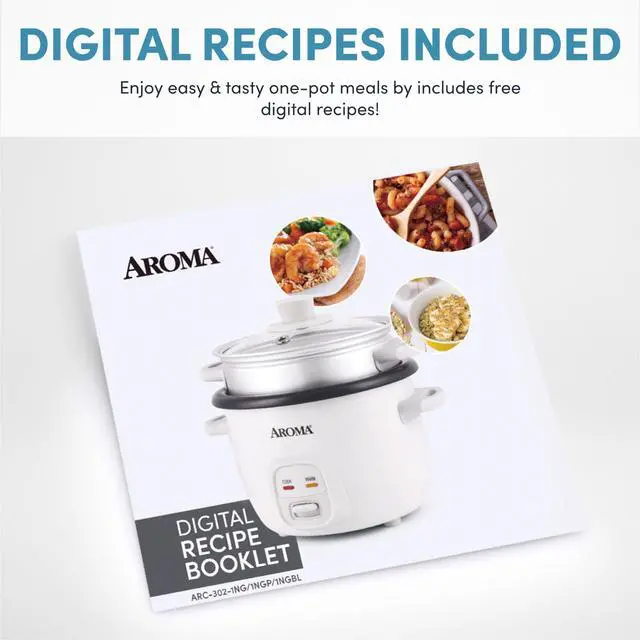 Includes inner pot, tempered glass lid, serving spatula, rice measuring cup, and removable steam tray.