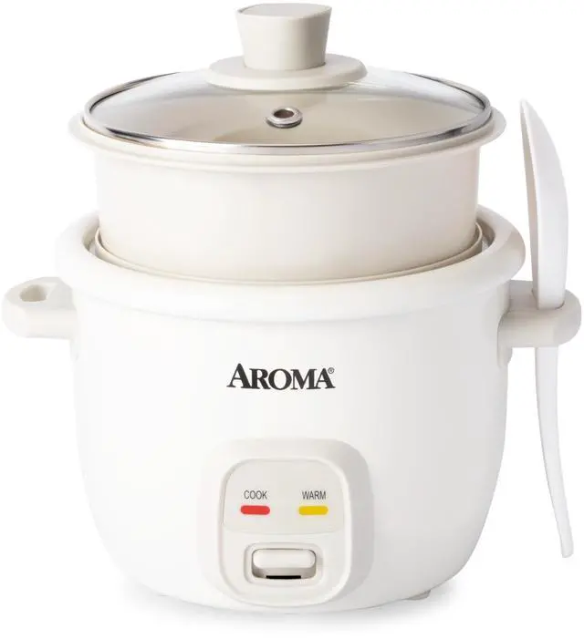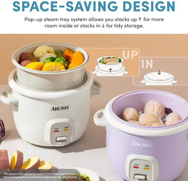• POP-UP STEAMER: Aromas new steamer basket stacks on top, so you wont lose any space inside the pot. Cook the max capacity (2 rice cups) and top with a food steamer!
