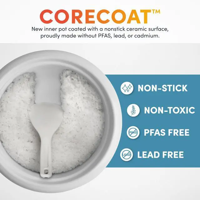 • NATURAL NONSTICK: This CoreCoat rice cooker pot is coated with scratch-resistant ceramic for easy cleanup. Make the healthy choice with no trace of PFAS or PFOA!