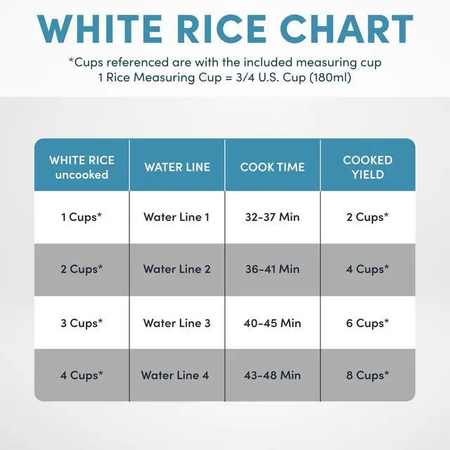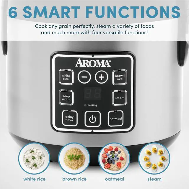 Easy-to-use, programmable digital controls for: White Rice, Brown Rice, Oatmeal, and Steam.