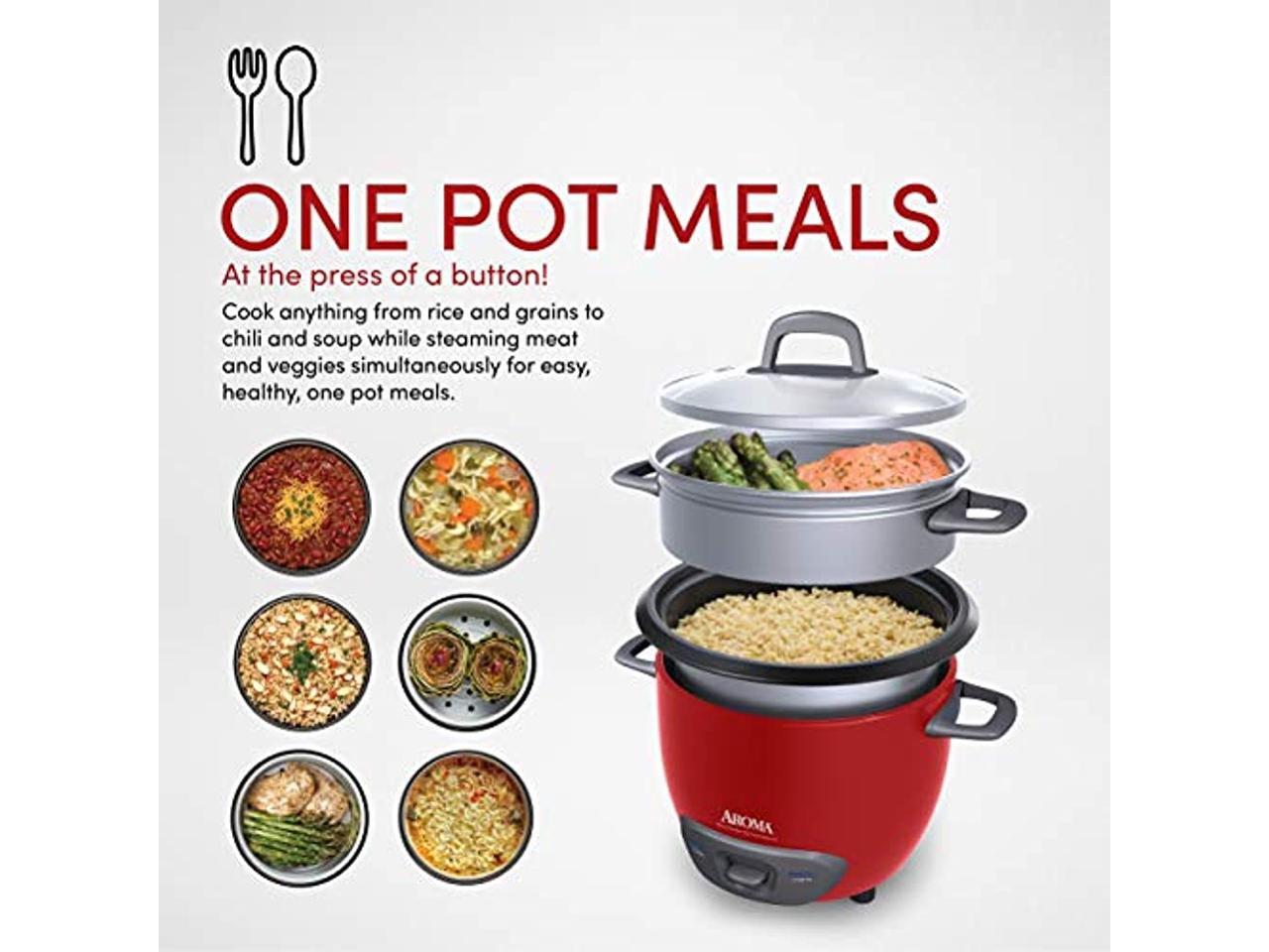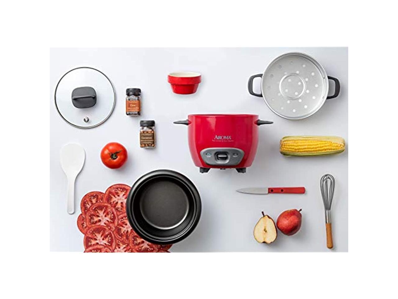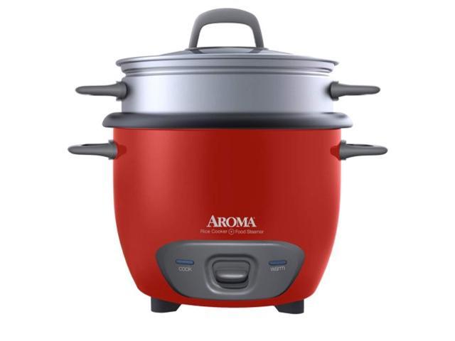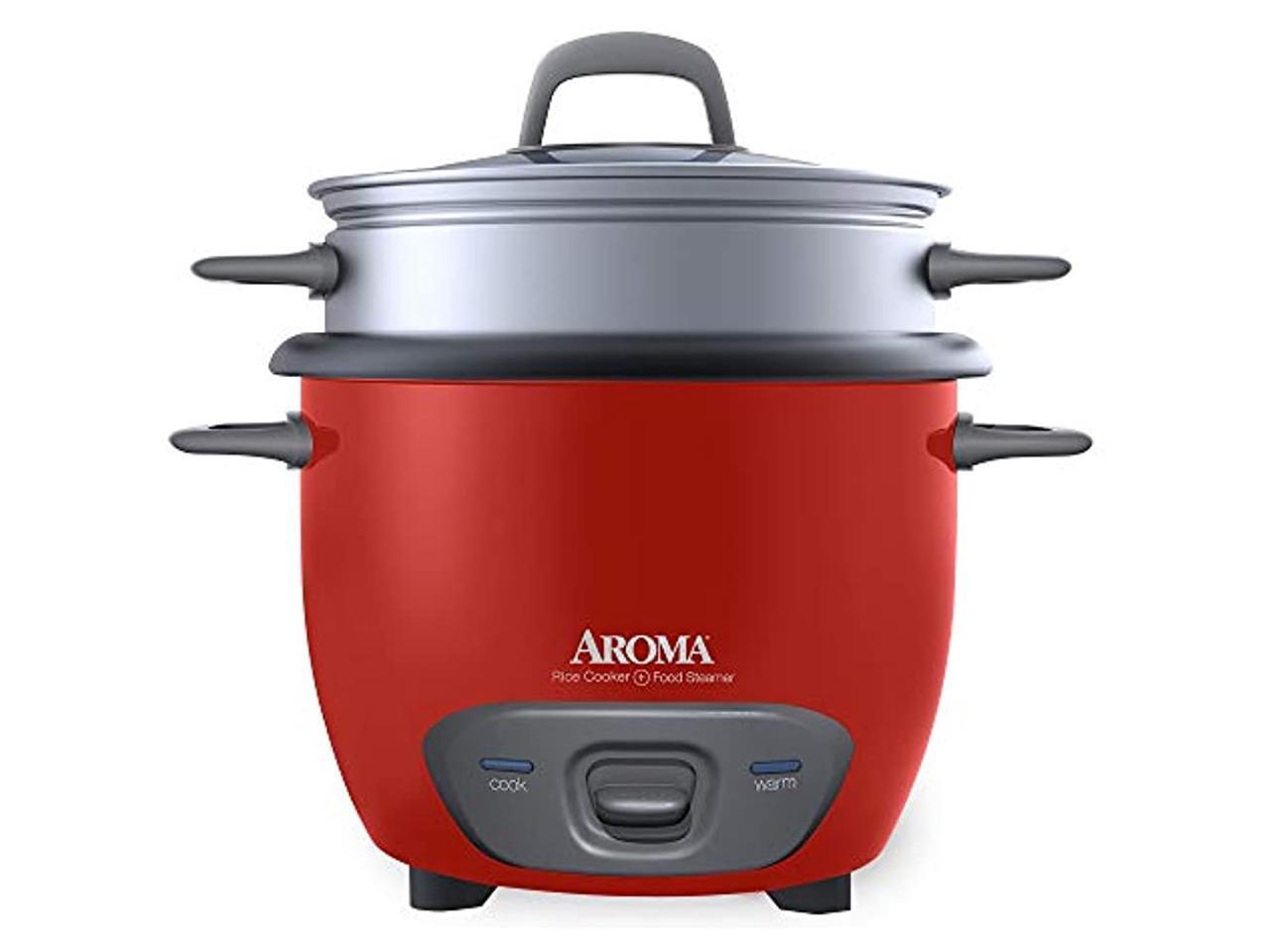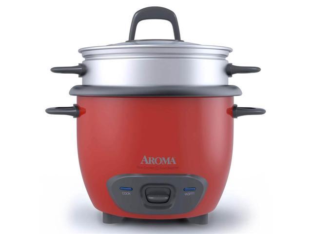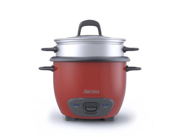 AROMA ARC-743-1NGR 3 Cups (Uncooked)/6 Cups (Cooked) Pot-Style Rice Cooker and Food Steamer, Red