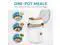 Steam seafood and vegetables with the stack-in steam tray while rice cooks below.
