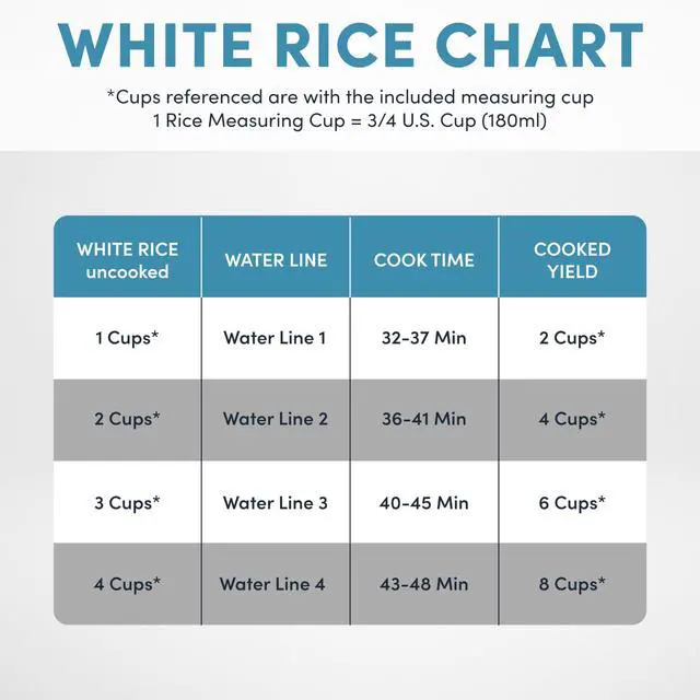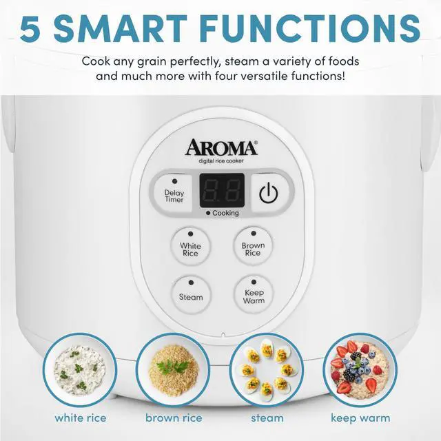 Easy-to-use, programable digital controls for: White Rice, Brown Rice, and Steam.