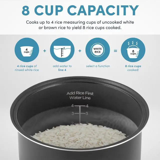 CAPACITY & DIMENSIONS: up to 8-cup cooked (4-cup uncooked) rice, 2QT, perfect for individual and family use.