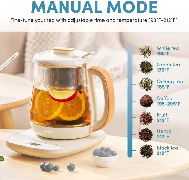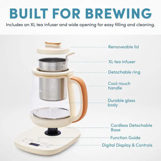 Precise, easy-to-use digital controls allow you to set the perfect temperature and brewing time for any tea or drink.