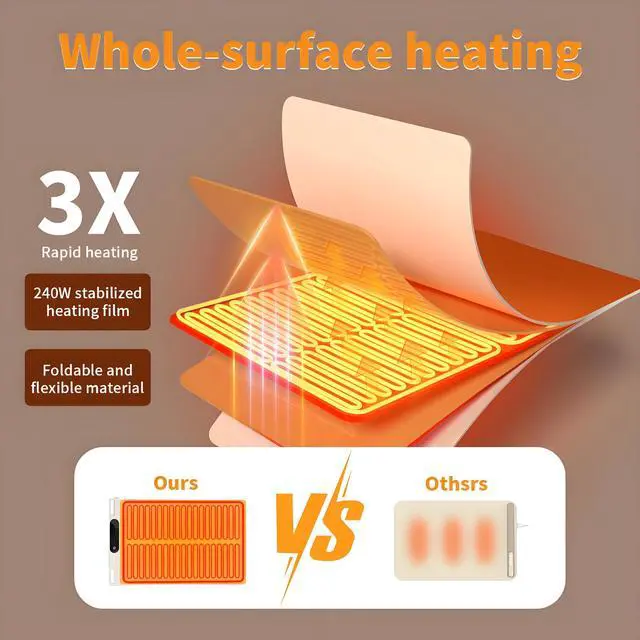 3-SEGMENT ADJUSTABLE TIMER AUTO SHUT-OFF: Uniform Temperature Of The Warming Pad, 2Cm Width Around The Warming Plate, Not Full Of Heating Elements To Avoid Accidental Contact With Burns. 1/2/4 Hour Auto Shut-Off. Built-In Long Press 3 Seconds To Turn On The Power To Ensure That Children Will Not Accidentally Touch The Warming Plate. Unique Silicone Feet, Not Easy To Slide, Silicone Feet Effectively Dissipate Heat, Protect Furniture While Providing Users With A Safer Experience.