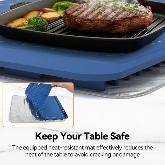 This product can be safely placed directly on heat-resistant surfaces. However, for heat-sensitive surfaces such as marble, granite, and quartz, we recommend avoiding prolonged high-temperature use to protect your countertop from potential damage.