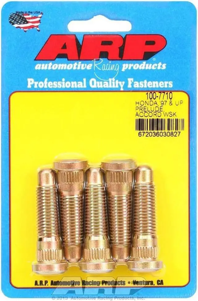 Wheel Stud - 12 mm x 1.50 Thread - 1.850 in Long - 0.485 in Knurl - Chromoly - Cadmium - Honda - Set of 5Automotive Racing Products (ARP) started in 1968, in Southern California. Their product line includes everything from engine and driveline fasteners for OEM replacement parts to exotic specialty hardware for the Formula 1, Indycar, NASCAR, NHRA Drag Racing, and Marine Applications. They produce a number of specialty products like cylinder head fastener kits, connecting rod bolts, exhaust manifold/header fastener kits, oil pan fastener kits, piston ring compressors, and more.