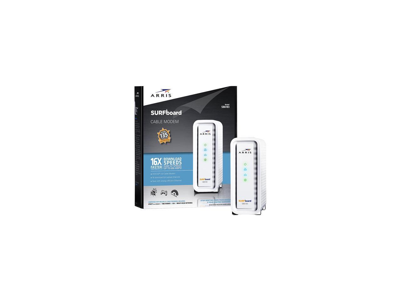 ARRIS SURFboard SB6183 DOCSIS 3.0 Cable Modem - 600 MHz Dual-Thread Processor - Certified Refurbished