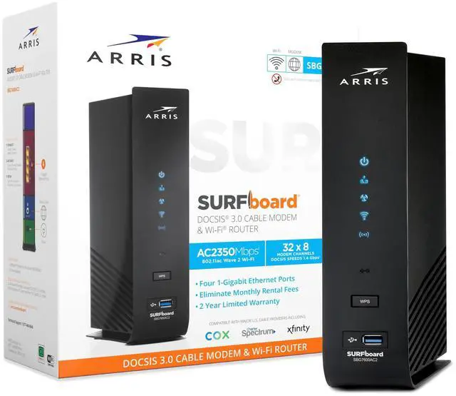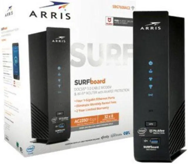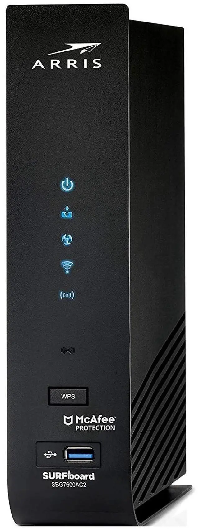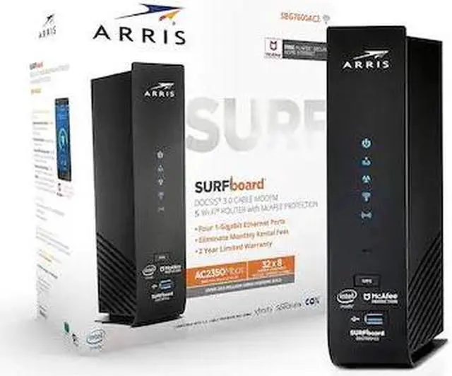 The SURFboard SBG7600AC2 is a DOCSIS 3.0 32x8 cable modem, AC2350 Wave 2 Dual Band concurrent Wi-Fi access Point and 4-Port Gigabit Ethernet Router, all wrapped up in one device. Plus it features ARRIS secure Home Internet by McAfee, keeping all devices on your network safe and secure from online threats like malware and phishing scams- and its free for 3 years! With the easy to use mobile app, set parental control By user profile, receive instant alerts of suspicious activity and manage your network no matter where you are.