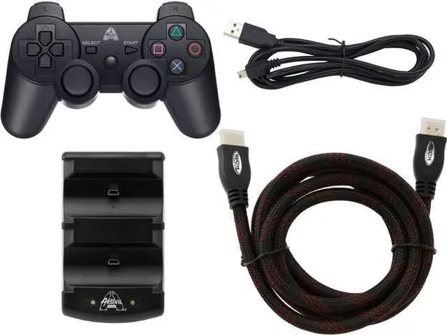 Features This kit comes complete with all the essentials accessories you need to better enhance your game. The kit includes a) PS3 Bluetooth controller b) a 6ft HDMI cable (1.4v) c) a docking station to charge to 2 controllers 4) a USB charging cable