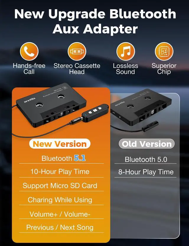 New upgrade Bluetooth 5.1 Cassette Adapter kit