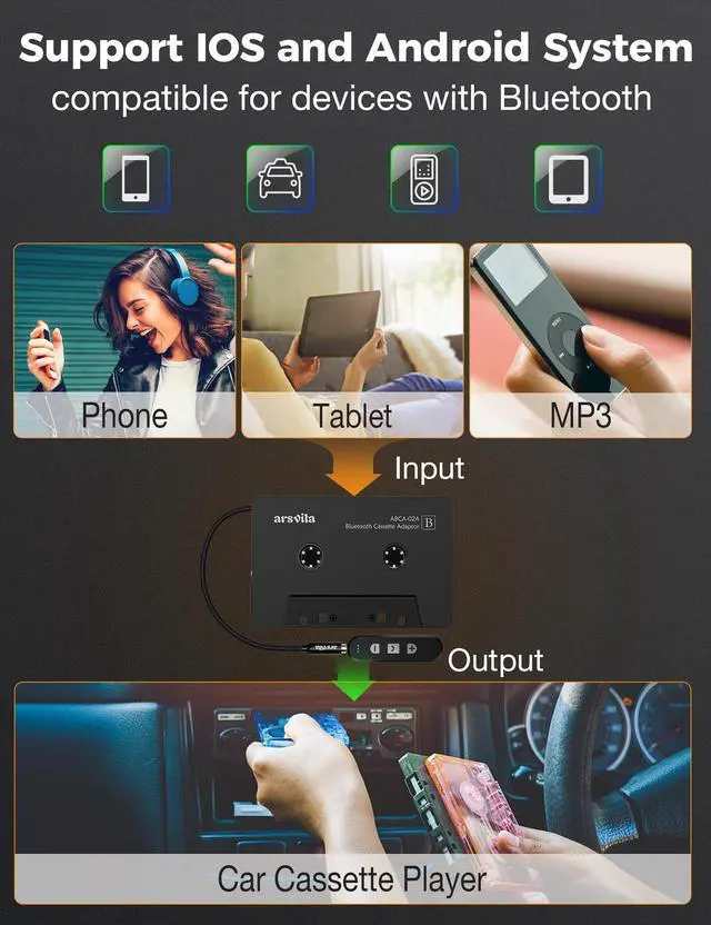 3. Combine the cassette and Bluetooth receiver for maximum flexibility.