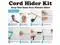 Contents of the Kit: Each cord hider kit comes with 24 cable raceways, each measuring 0.54 in (H) × 0.94 in (W), designed to accommodate 24 cables, with a total length of 360 inches. It also includes 15 couplings, 4 L-elbows, 3 T-fittings, 3 Inside-elbows, 3 Outside-elbows & 1 instruction