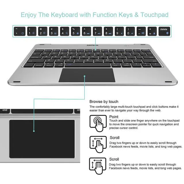 This Bluetooth keyboard also doubles as a screen protector and viewing case. Simply push the iPad into the unique iPad case and let the powerful magnets grip the iPad securely to instantly give your iPad a keyboard with touch pad and a protective cover that also acts as a multi-angle stand for easy viewing and typing. Looks just like a laptop!