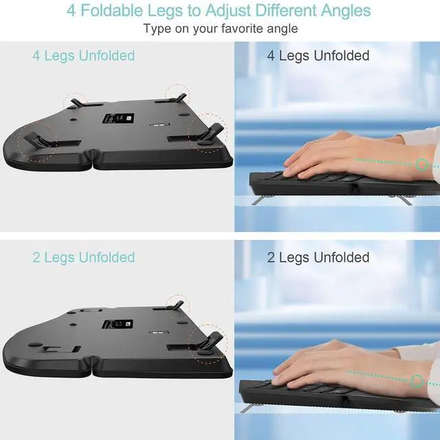 The keyboard has built-in 4 foldable legs so you can adjust to your favorite typing angle.