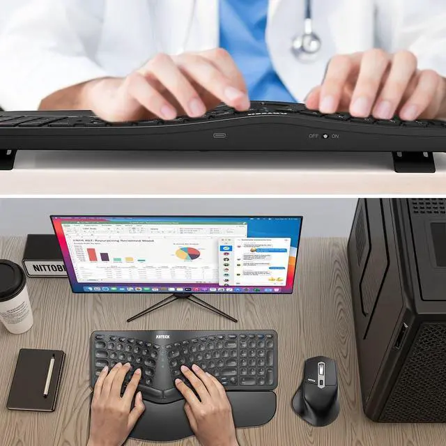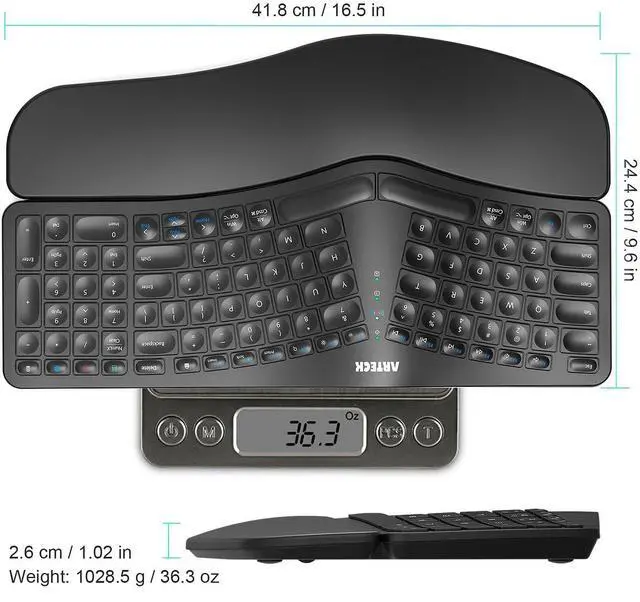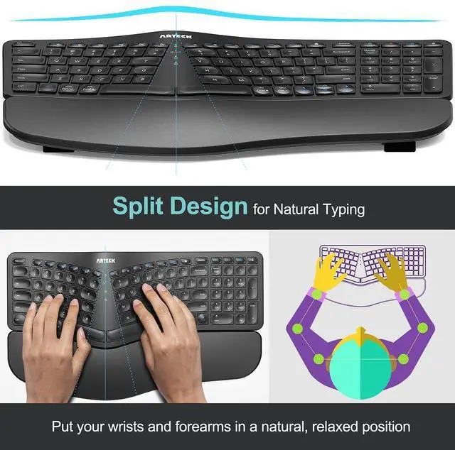 The split design helps to position wrists and forearms in a natural, relaxed position.