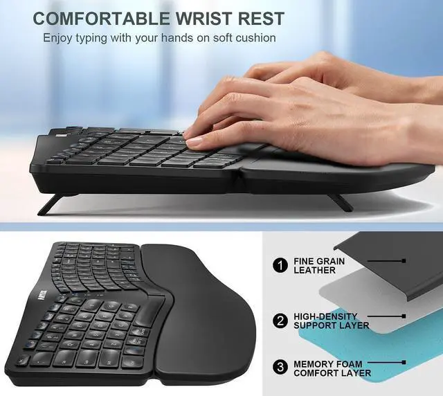 The keyboard has comfortable wrist rest so you can place your wrist on the cushioned palm to rest and enjoy the typing.