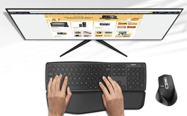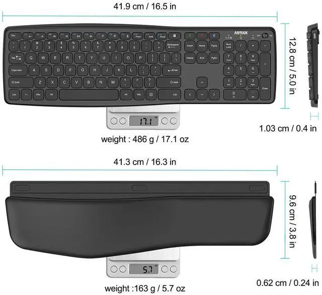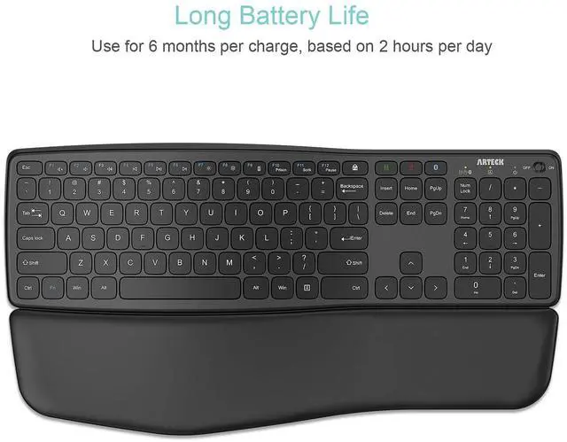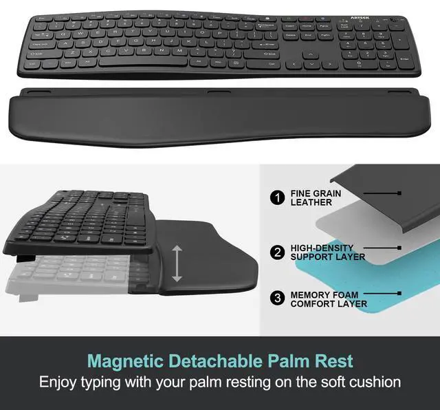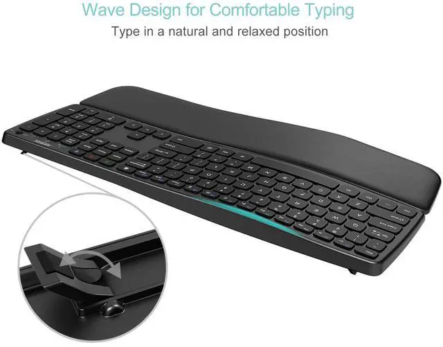 The wave design helps to position wrists and forearm in a natural, relaxed position.The keyboard has built-in foldable legs so you can adjust the typing angle.The keyboard has detachable palm rest so you can rest your palm and wrist on the cushioned palm rest and enjoy the typing.