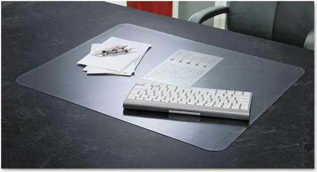 See-through desk pad keeps important information, such as lists, charts and schedules in view. Flexible vinyl bends for insertion of materials. Cushioned surface for smooth handwriting. Nonslip grip keeps desk pad in place. Doubles as a mouse pad.