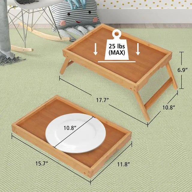 - Enough space to hold all breakfast. Surrounding tray lips prevent any food or beverage from spilling out and soiling the bed.