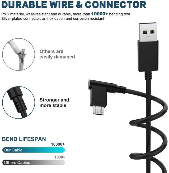 - The replacement USB charging cable is longer and extends charging time by 50-100%. Charge electronic device through the USB port of your PC, USB travel charger, and USB car charger. Micro USB to USB charging cable with data sync, high-speed data transfer rates of up to 480 Mbps, which gives you the flexibility you need.