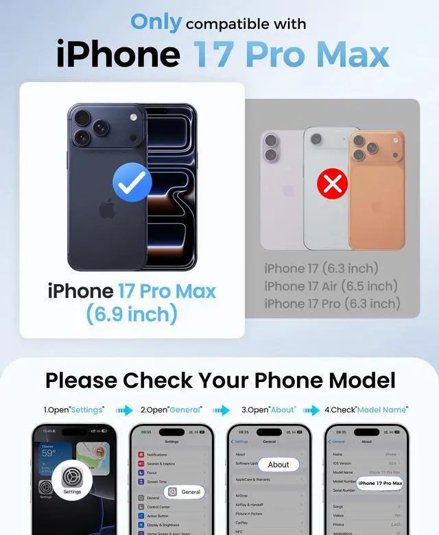 This case is only for iPhone 17 Pro Max (released in 2025), not fit for other iPhone 17 Series ( iPhone 17 & iPhone 17 Air & iPhone 17 Pro) .