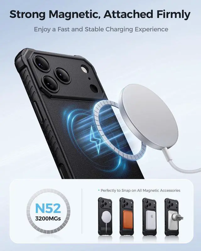 This iPhone 17 Pro Max case not only fits perfectly with MagSafe ecosystem, but also can easily adapt to all magnetic accessories, such as magnetic chargers, wallets, car mounts, etc.