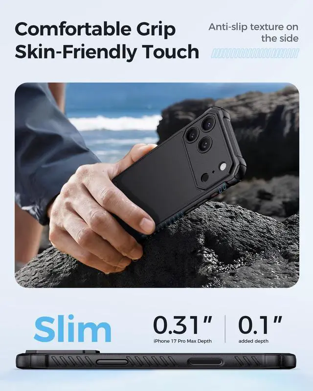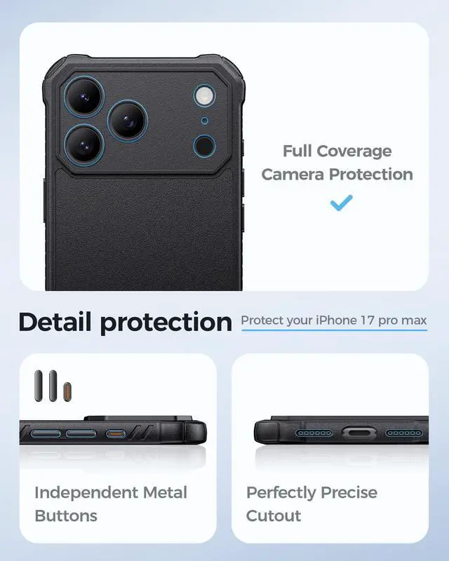 Great! The 17 Pro Max case is made of durable polycarbonate and flexible silicone bumper. Bsides, the case utilizes four-corner airbag cushioning technology with full lens coverage and a raised bezel design to effectively protect your new phone.