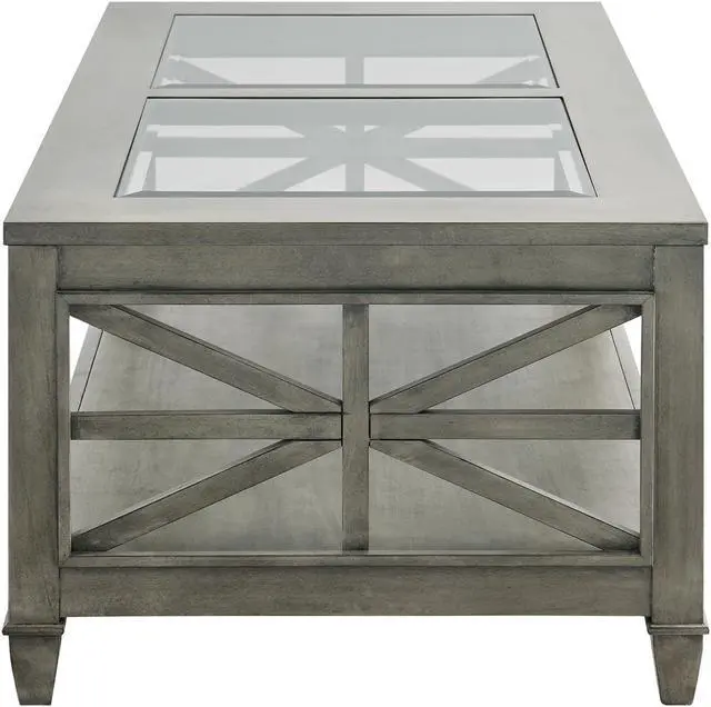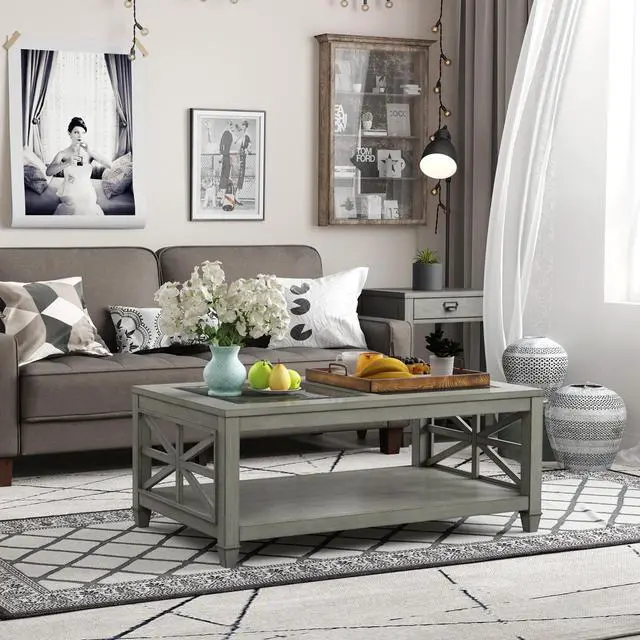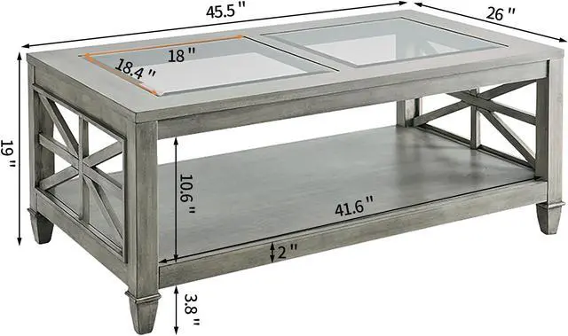 National Emblem Pattern Private Design with old Grey finished. The coffee table is a valuable addition to a lounge. and the large desktop with storage shelf offer plenty of space for everything you need in your living room.