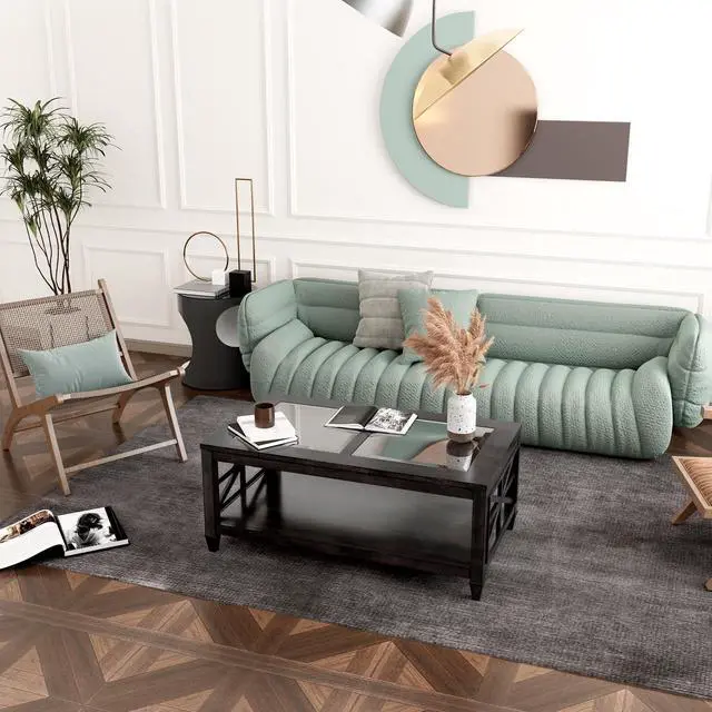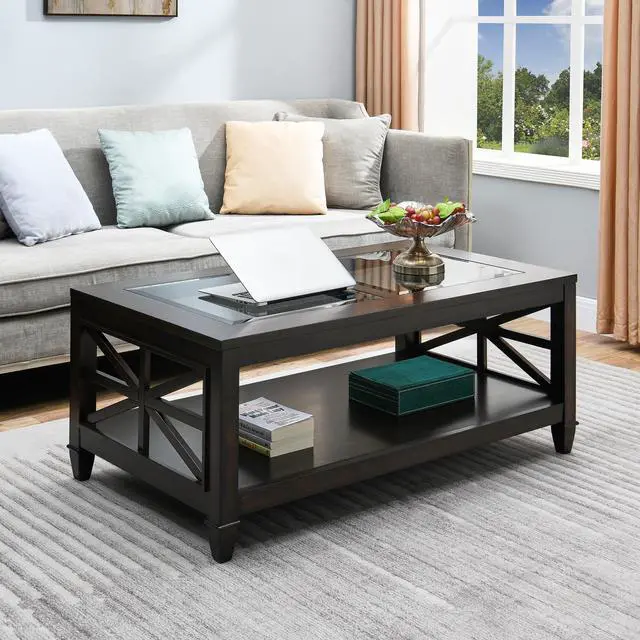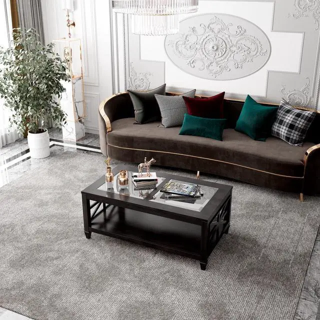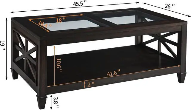 National Emblem Pattern Private Design with old Grey finished. The coffee table is a valuable addition to a lounge. and the large desktop with storage shelf offer plenty of space for everything you need in your living room.