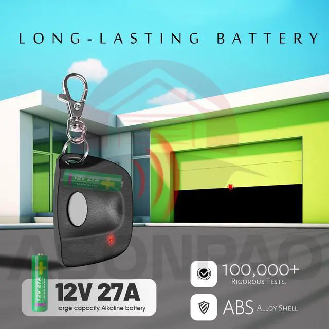 **Extended Battery Life**: Equipped with a 12V 27A Alkaline battery and smart low-power chip, our remote ensures prolonged battery life and is compatible with various garage door motors.