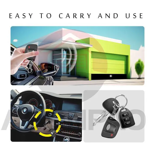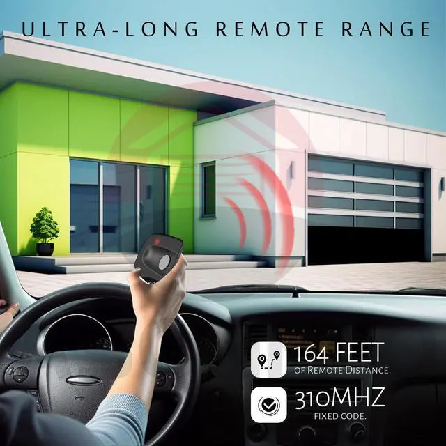 **User-Friendly Design**: Experience a 164-foot control range and simple pairing with your garage door motor. Its compact design makes it easy to attach to your car keys for convenient access.