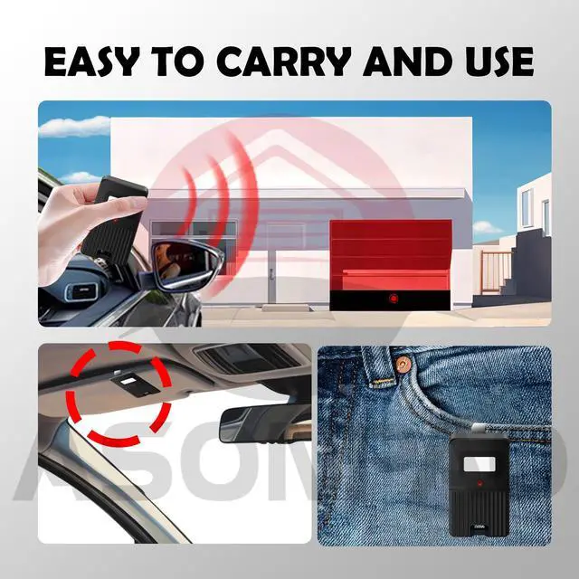 **Durable ABS Alloy Case**: Sturdy and portable, easy pairing with garage door motor, fits on car sun visor.